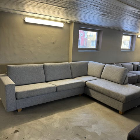 Grå hjørnesofa med puff