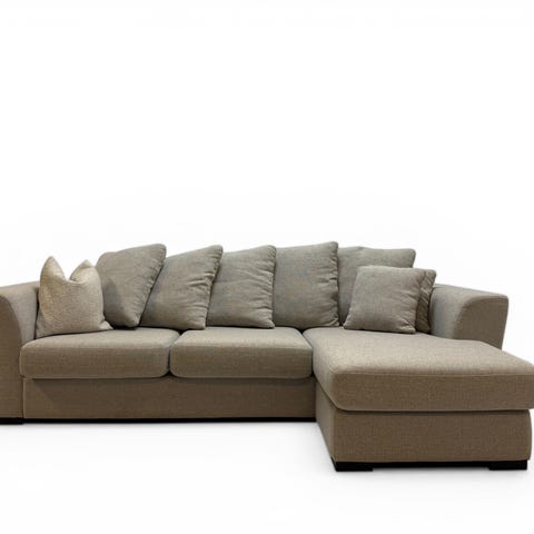 Det slitesterke tekstiltrekket gjør sofaen praktisk i hverdagen, samtidig som den nøytrale fargen er enkel å kombinere med ulike interiørstiler.