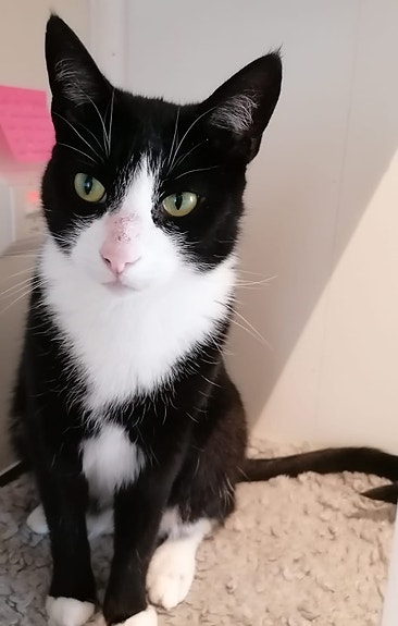 Hun er estimert å være 1,5 år gammel, og er mer av den forsiktige typen, men hun åpner seg for de som lar henne være seg selv i sitt eget tempo. Og da absolutt elsker hun kos, og vil gjerne sove i sengen med deg om hun får lov.