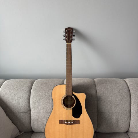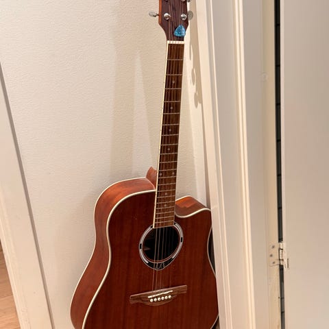 Gitar med stålstengerLys naturfarget front (trolig lakkert laminert tre)