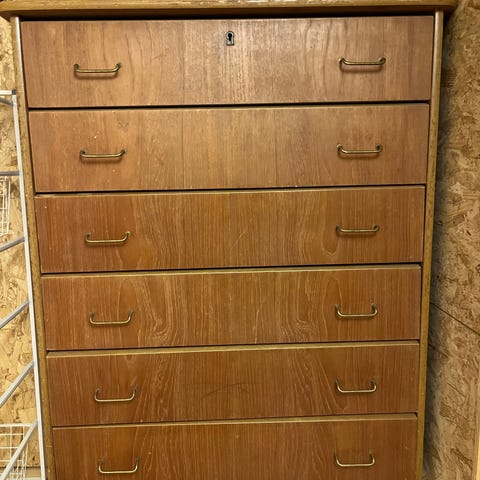 Retro teak kommode med 7 skuffer, smal type- Hent eller få levert