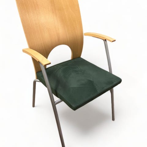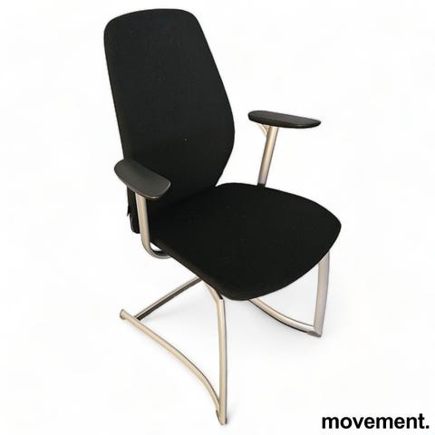 Produktbeskrivelse PLUS konferansestol fra Kinnarps med et moderne og funksjonelt design. Stolen er trukket i slitesterkt grått stoff som gir en elegant, men samtidig praktisk løsning for møterom og kontorer. Med sine ergonomisk utformede armlener får man ekstra støtte og komfort, noe som er ideelt for lange møter. Den lette, men stabile konstruksjonen gjør stolen enkel å flytte og oppbevare. Spesifikasjoner Materiale sete: Grått stoff Materiale ramme: Stål Funksjoner: Med armlener Høyde: 94 cm Bredde: 40 cm Dybde: 53 cm Sittehøyde: 45 cm Rygghøyde: 54 cm Setedybde: 45 cm Tilstand Stolen er i god tilstand med normale bruksmerker. Helhetsinntrykket er fortsatt svært godt, og stolen er klar til bruk.