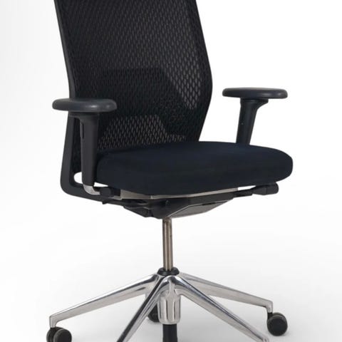 Produktbeskrivelse Moderne møteromsstol fra ELJ med et minimalistisk og funksjonelt design. Stolen har et polstret sete og rygg som er trukket i slitesterkt svart stoff, noe som gir en stilren og profesjonell look. Den kommer med hevsenk-funksjon som gjør det enkelt å justere høyden for optimal komfort og tilpasning. Stolen har også armlener for ekstra støtte og komfort under lange møter. Det moderne hjulkryss i svart plast sørger for smidig bevegelse. Spesifikasjoner Farge: Svart Materiale sete: Slitesterkt stoff Funksjoner: Hevsenk, armlener, hjulkryss Tilstand Stolen er i god tilstand med normale bruksmerker, med noen synlige slitasjemerker på armlenet. Sittekomforten er bevart, noe som gjør denne stolen ideell for både møterom og kontorbruk.