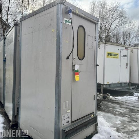 Toalettkabinen er i god stand uten kjente feil eller mangler. Vennligst merk at henting må skje med kranbil på grunn av kabinens størrelse og vekt.