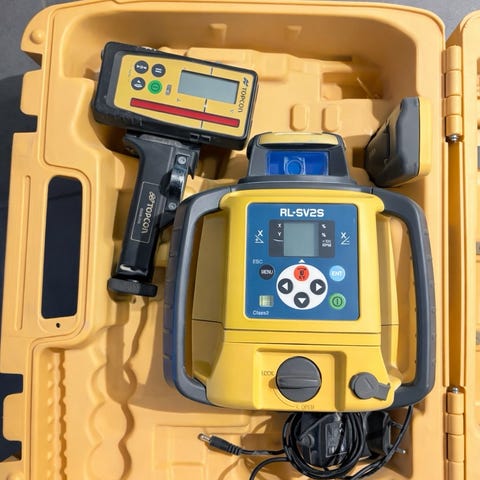 Leica Rugby 620 RotasjonslaserSelges med stativ, stav og koffert.
