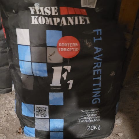 Et parti med fiberarmet reparasjonsmørtel som vi ikke fikk bruk for i prosjekt allikevel.