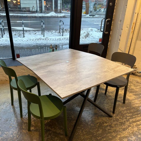 Gjøres om enkelt fra lavt sofabord til høyt spisebord –
