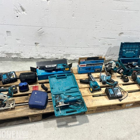 Parti med Makita 18V maskiner, elektriske måleinstrumenter og diverse håndverktøy. Inneholder blant annet borhammer, batteridriller, installasjonstester, strømtenger, merkemaskin samt et bredt utvalg bor og tilbehør.🔹 Makita DHR242 18V borhammer