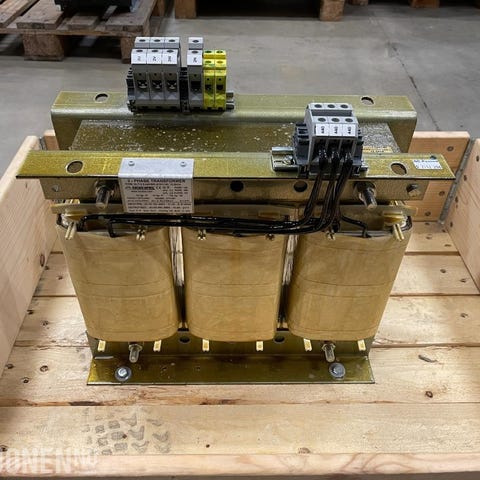 3-fase transformator 230V–440V 10 kVA med 32A uttakSelges som avbildet.