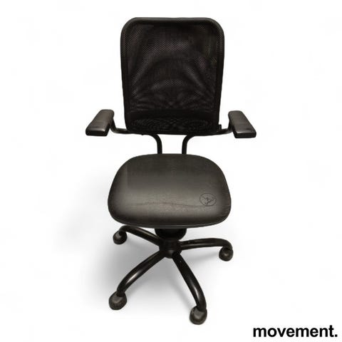 Produktbeskrivelse Ergonomisk kontorstol fra SpinaliS, modell Hacker, med en stilren og moderne design. Stolen har et ryggstøtte i mesh som sikrer god ventilasjon og støtte, ideell for lange arbeidsøkter. Det komfortable setet i plast er utformet for å gi en behagelig sitteopplevelse. Ergonomiske funksjoner Ryggstøtte: Høy rygghøyde i mesh for optimal støtte og pusteevne Armlener: Festet armlener for ekstra komfort Sete: Komfortabelt og støttende sete i plast Justeringsmuligheter: Høydejusterbart sete for perfekt tilpassing Spesifikasjoner Merke/Modell: SpinaliS Hacker Materiale: Mesh (rygg), plast (sete) Farge: Svart Tilstand Stolen er i god tilstand med minimale bruksmerker. Det er ingen synlige skader på stoffet eller rammen, og alle justeringene fungerer som de skal. Dette gjør stolen til et godt valg for både hjemmekontor og arbeidsplasser.