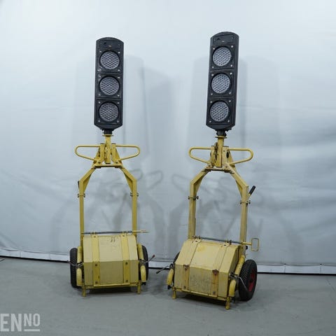 Selges samlet: 2 komplette R6+ fotgjenger trafikklys.Dette er robuste, profesjonelle enheter beregnet for bruk i kombinasjon med R6+ trafikksystem. Leveres komplett med tung fot, galvanisert stolpe, fotgjengersignal og trykknappmodul.