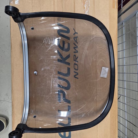 Vi har en fin barnepulk med drag, merke Fjellpulken, til salgs i butikken nå. Pris kr. 1500 for pulk og drag.