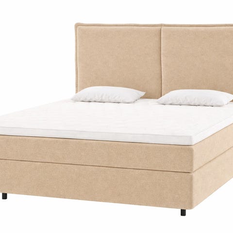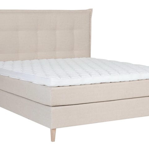 Forte rammeseng 160x200 Medium/Fast i tekstil Chenille Latte 30, med Sval Hyperflex overmadrass og ben square eik 19 cm + W50 sengegavl