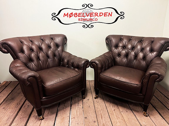 Chesterfield er en stilbetegnelse, ikke et firmanavn. Ikke alle møbler er merket med produsent, og vi kan derfor ikke garantere opprinnelse.