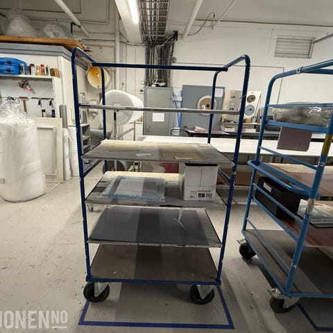 Glassplater / herdete plater på pall selges samlet.Disse står på traller med hjul.