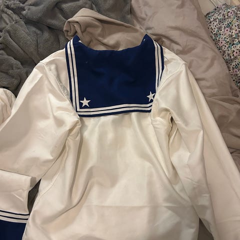 Sexy seilerkostyme med belte, slips og hatt for komplett partykostyme.