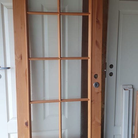 Ubehandlede dører må behandles med oljebeis for utvendig bruk umiddelbart etter montering.