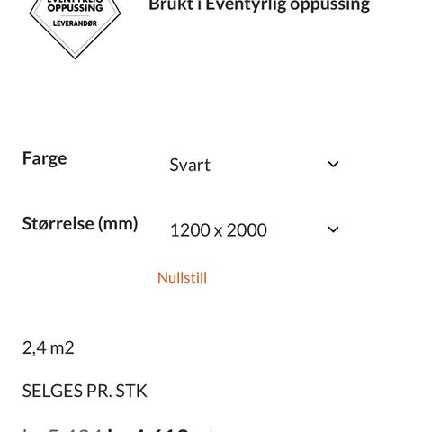 Prisen er avhentet på vårt lager Justisveien 30 3533 Tyristrand. Henting må skje i tiden mellom kl. 08.00 og 14.00. Vi kan tilby levering i Oslo-området/Drammen