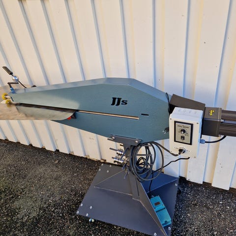 Sikkemaskin av den typen blikkenslagere bruker. Leveres med 6 stk. rullesett. Føringsskinne medfølger. Monteres på benk, holder medfølger. Bestillingsvare.