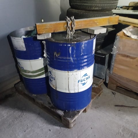 200 liter plastfat som har vært vaskemidler i.