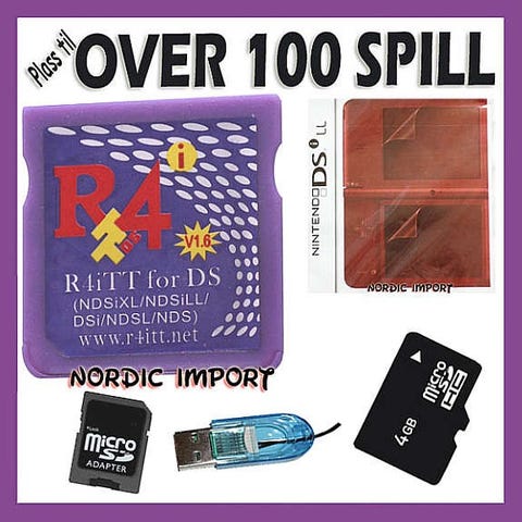 Ingen modifisering til Nintendo DS / DS Lite / DSi / DSi XL - du mister ikke din garanti, bare legg R4 i spill-plassen på din DS og velg det du vil fra menyen.