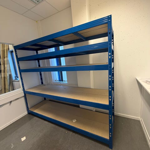 Helsveiste Stålskap med 4 hyller og låsbar dør.