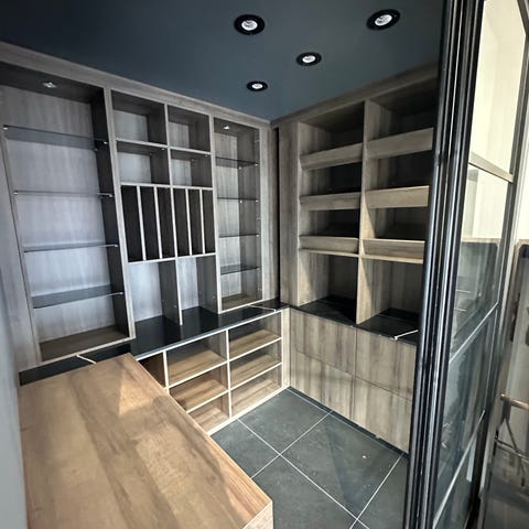 Vi leverer garderobeskap og hyller i heltre furu.