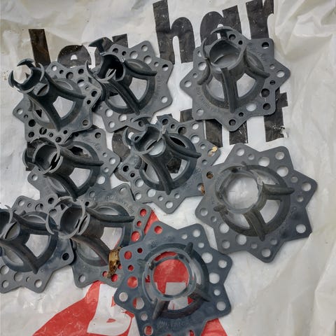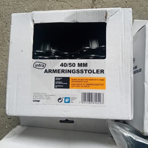 Armering stoler for armeringsnett til gulvstøp og for kamjern til sålefundamenter.