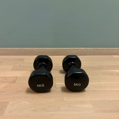 • Number med hantler: 14 x vektskive 2,5 kg. 2 x vektskive 1,25 kg.