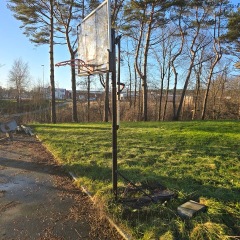 Basketballstativ med oppsamlingsnett. Unngå at ballene spretter overalt, nå kan man raskt hente de i nettet.