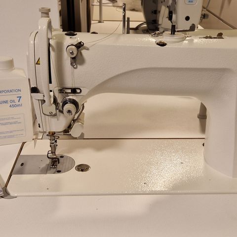 Dette er en ny og prisgunstig 1-nåls universal rettsømsmaskin med undertransport som kan brukes til litt kraftige materialer som møbelstoffer, kunstlær m.m.