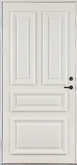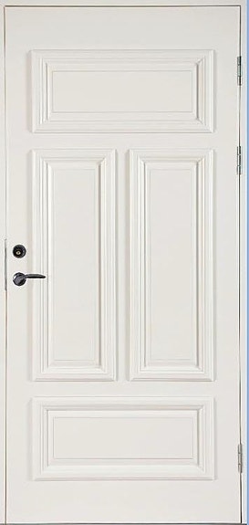 Dørbladet er oppbygd rundt et rammeverk isolert med 50 mm freonfri celleplastisolering og med 0,5 mm aluminiumplatar på hver side. Utenpå disse ligger sporfreste HDF-skiver som er hvitmalte som standard.