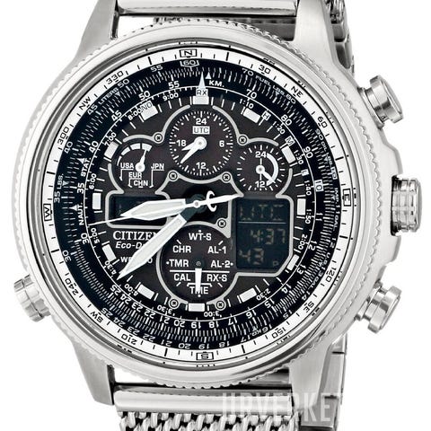 * Traditional analog dial with LCD display shows two time zones in one watch