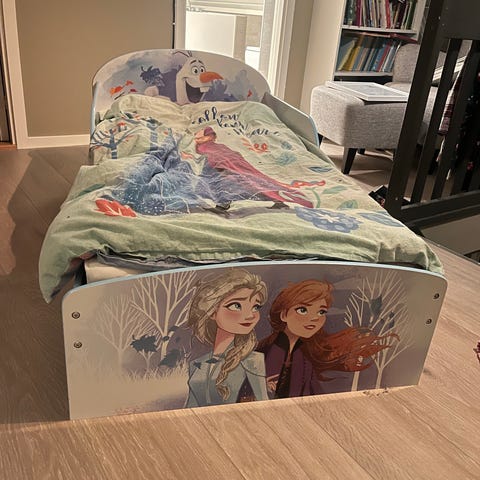 Gjør om soverommet til Kongeriket Arendel med denne magiske Frost slede-sengen. Her sover barnet ditt trygt sammen med Olaf, Elsa og Anna!