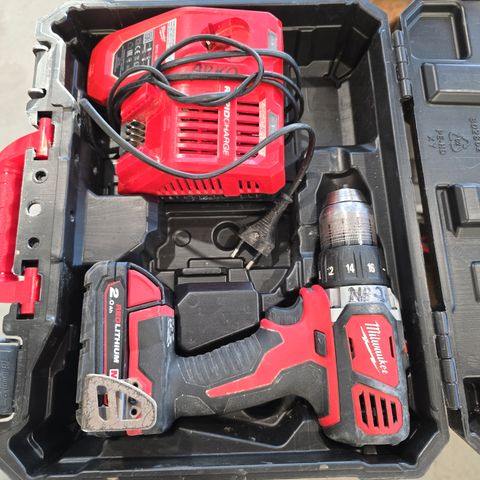 Sjekk prisen! Milwaukee M18 BLPD-502C børsteløs drillsett med 2 x 5Ah batterier