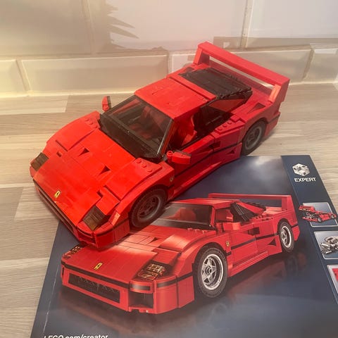 Bli bedre kjent med ein av verdas beste superbilar - Ferrari F40. Denne fantastiske modellen av F40 med sine aerodynamiske linjer, karakteristiske hekkspoiler ikoniske raudfarge er full av flotte detaljar inkludert oppfellbare hovedlykter, luftinntak på sidene og eit ventilert motorrom bak som er mulig å åpne. Åpne opp motorluka og sjå den vakre twin-turbo, 90 gradersV8 motoren. Åpne opp passasjerdørene og du ser eit mest mogleg autentisk interiør inklusiv dørhåndtaka, ratt med ferrarilogo og to raude racingseter, medan du under panseret finn plass til baggasje og verktøy.