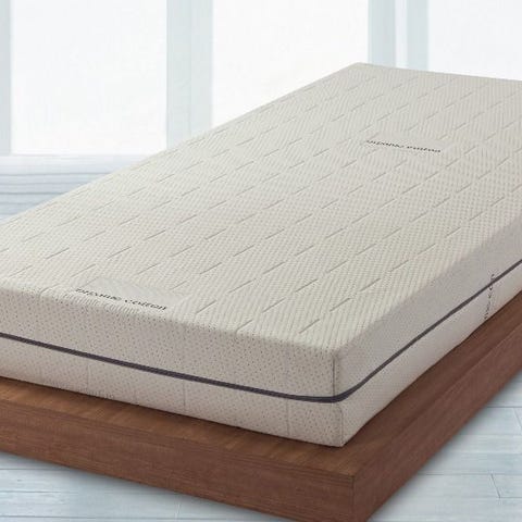 Hver madrass kommer sammenrullet i plast.