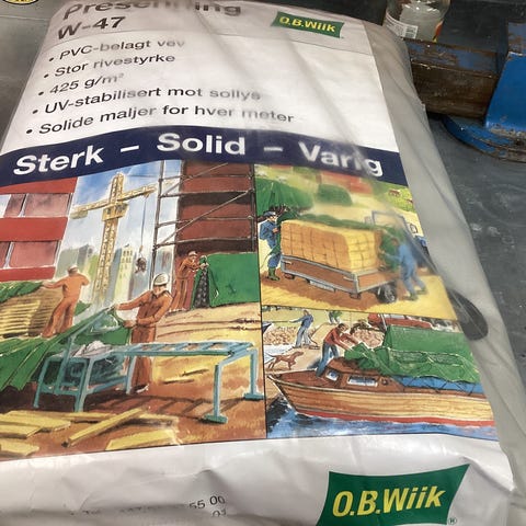 Flat presenning. Ideell til overdekning av båter, maskiner, materiell, på byggeplasser osv.