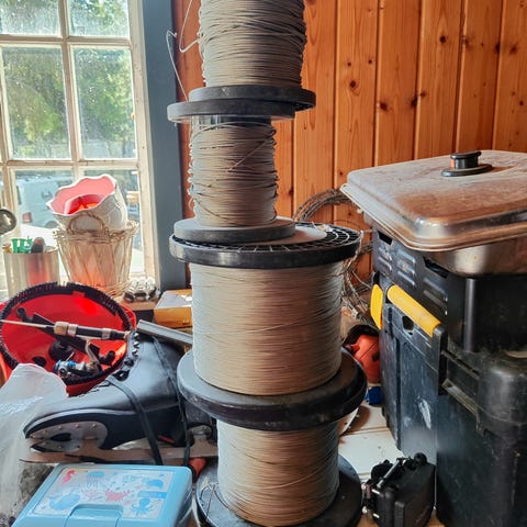 Ståltrådkjerne 3,8mm og plastbelegg 0,5mm.