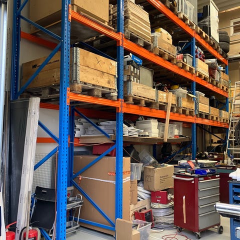 I tillegg har vi et stort utvalg i pallereoler og kraftige hyller til småvarer.