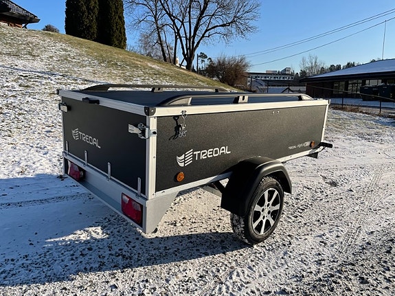 Robust ny enakslete Tredal båthenger. Fleksibel lyktearm bak gjør at baklyktene enkelt kan vippes til siden slik at du slipper kople fra et digert lyktebrett ved sjøsetting og opptrekk! Justerbar baugstøtte, nesehjul og vinsj er standard. Naturligvis utstyrt med Tredals SPIRAX system med spiralfjæring og støtdempere. Robust rammekonstruksjon der buen av draget går hele veien fra påløpet til lyktebrettet bak. Utstyrt med unik dobbel tippramme i bakkant. Ved å løsne en sikkerhetsmekanisme kan du tippe hele bakrammen over akslingen! Slik som på illustrasjonsbildet til høyre.