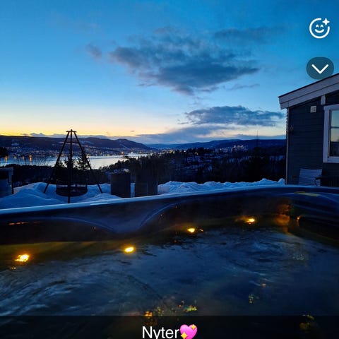 Badet er 213 cm med plass til 7 personer.
