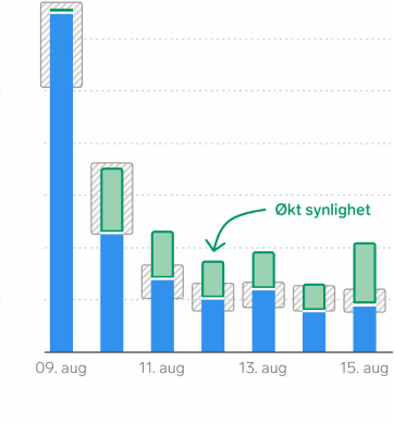 Om det lønner seg å bruke Blink, spør du? Ja, det kan vi virkelig påstå at det gjør. Våre tall viser at annonser med Blink i snitt får ca. 30 prosent flere besøkende enn annonser uten. Det kan jo være nesten 30 prosent flere potensielle boligkjøpere, det!
