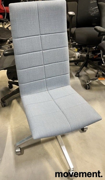 3 950 kr3 stk Lammhults Archal konferansestol med hjul, høy rygg Lyst blått stoff, fotkr20. jan. 2026LanghusMovement AS