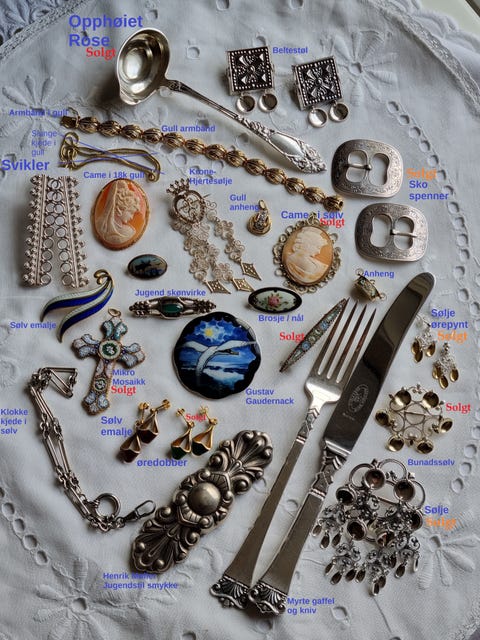 Til salgsSmykker i gull, sølv emalje, sølje og sølv bestikk26. nov. 2025SlependenRinghoff Antikk & Brukt