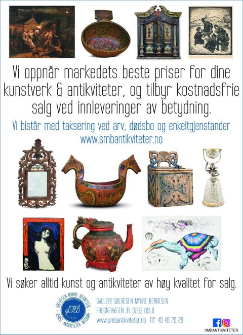 Til salgsKunst og antikviteter av høy kvalitet søkesOslo25. des. 2024Sølvesen Myhre Berntsen Kunst & Antikviteter