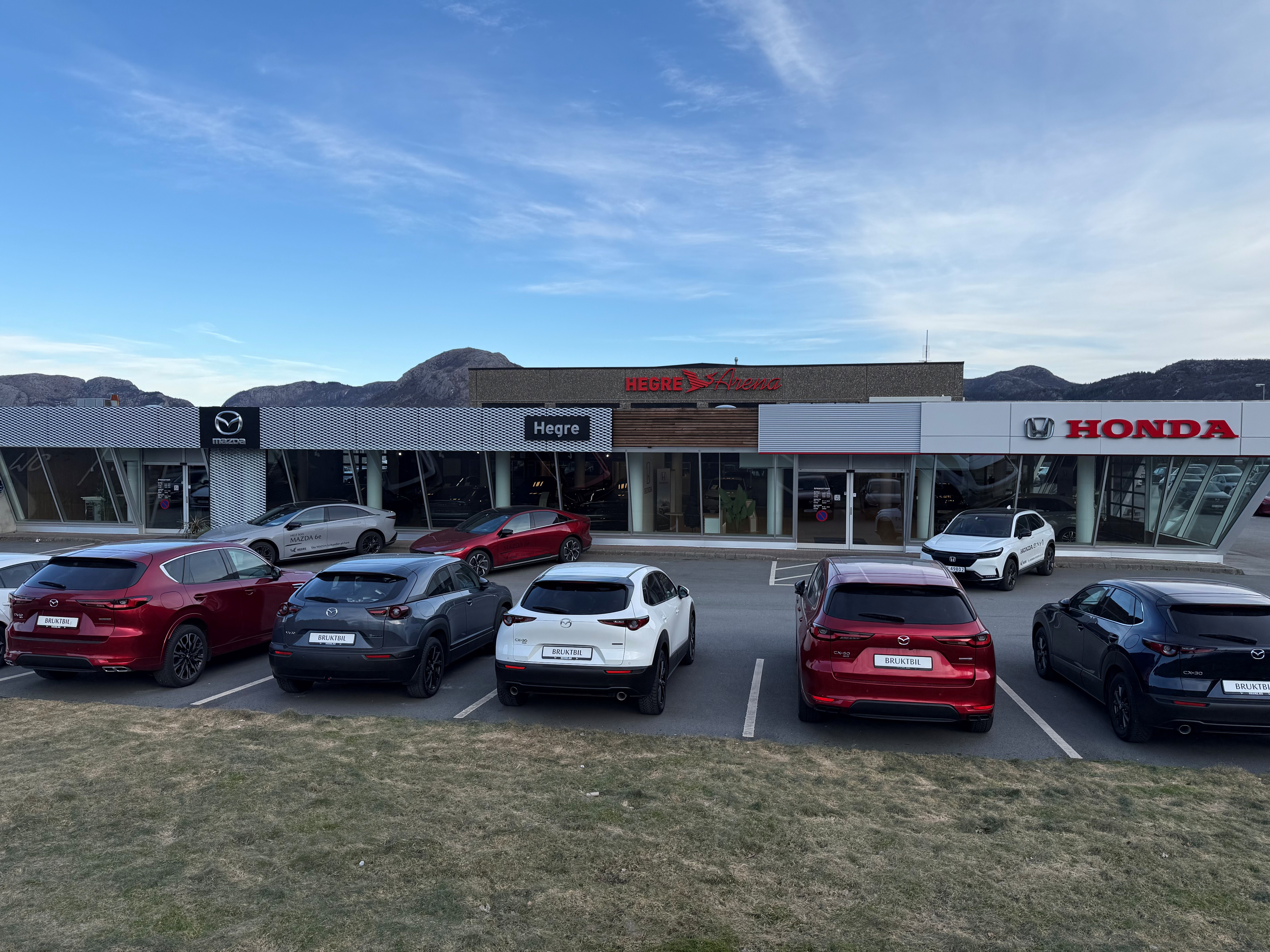 Hegre Auto er en bilforhandler som holder til i Gamleveien 81-83 på Lura i Sandnes. Vi er distriktets eldste og eneste forhandler av Mazda, og har hatt det japanske merket i vårt agentur siden 1969. I mai 2025 fikk vi agentur på et japansk merke til, så nå er vi også distriktets eneste Honda forhandler. Slagordet vårt «biler og folk du kan stole på» er ikke bare et motto, det er også en filosofi vi aktivt streber etter hver eneste dag her på Hegre Auto.