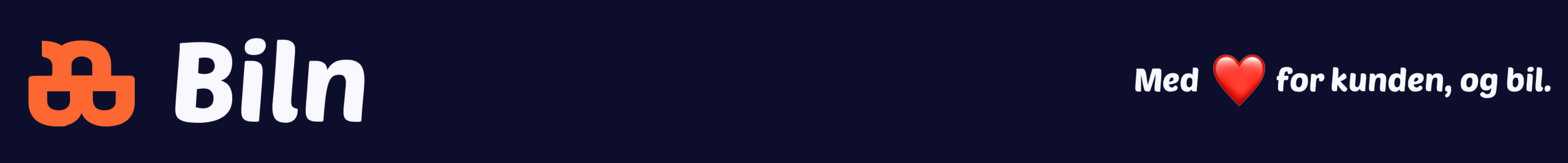 Velkommen til Biln AS, en bilforhandler med ❤️ for kunden, og bil. Hos oss skal man forvente en ryddig og trygg bruktbilopplevelse. Vi skal vite hva vi selger og du skal få vite hva du kjøper.
