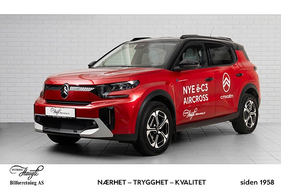 Citroen ë-C3 AircrossMax 44kWh 113hk DAB/RK/BT/NAVI/2025 ∙ 4 950 km ∙ El ∙ 303 km rekkevidde269 000 krHønefoss ∙ Sverre Haugli Bilforretning ASMerkeforhandler ∙ 52 mnd garanti