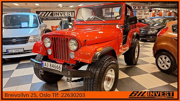 Jeep AndreCJ5 360 CUI/5,9-V8 Helrestaurert unik Utst.bil,300HK4x41979 ∙ 2 039 km ∙ Bensin ∙ Manuell325 000 krOslo ∙ Bil Invest Oslo ASForhandler ∙ 3 mnd garanti